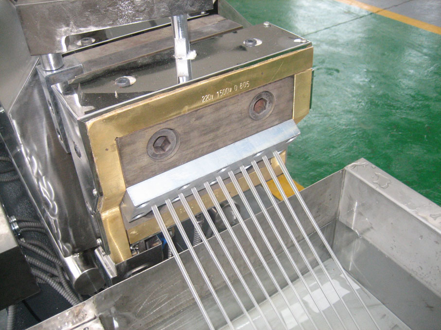适用于:增强塑料,无机物填充,各种电缆料,母料,绝缘电缆料,色母粒,阻燃材料。 1、计量喂料机 2、计量喂料机 3、计量喂料机 4、液体储料罐 5、侧向喂料机 6、双螺杆挤出机 7、排气口 8、冷切机头 9、冷却水槽 10、吹干机 11、切粒机