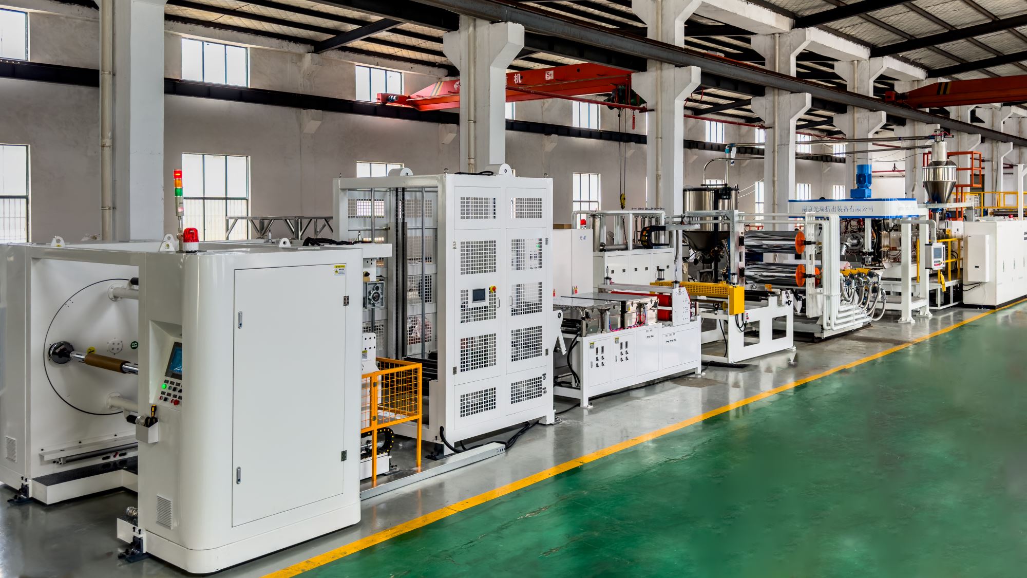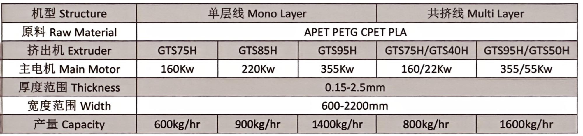 我公司消化吸收国外先进技术,采用双螺杆直接挤出加工PET片材,多路真空排气,无需干燥,可节能40%以上。采用MULTI-TOUCH辊组,连续多辊压光,自动调间隙,片材宽度800mm以下时,产量高达3吨/小时。
